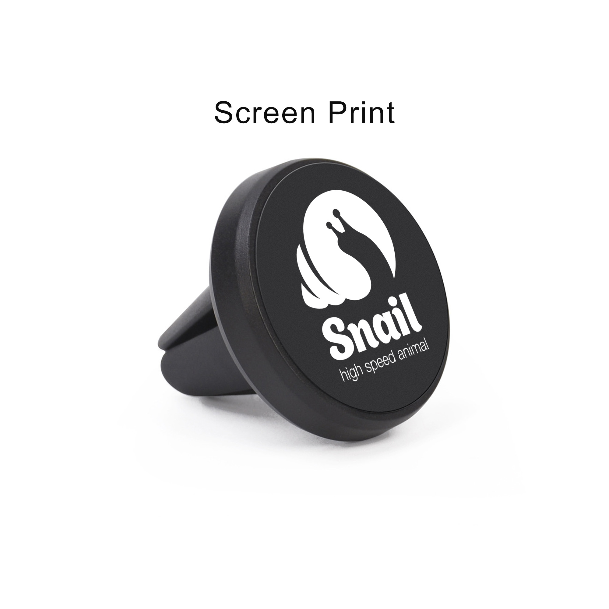 Upgrade your drive with our Clip-on Car Phone Holder! Made from durable aluminium and soft silicone, it securely holds your phone while driving. Choose from 5 stylish colours to match your car s vibe. Custom screen print options available for branding or personalization. The package includes a box, holder, and 1 magnetic sheet for extra convenience. Easily clips onto car vents for hands-free navigation and safe driving. Stay focused on the road while keeping your phone in sight!. Sizing: Dia3.2cm High: 3cm. Materials: Aluminium, Silicone. Print Position: Front.4week