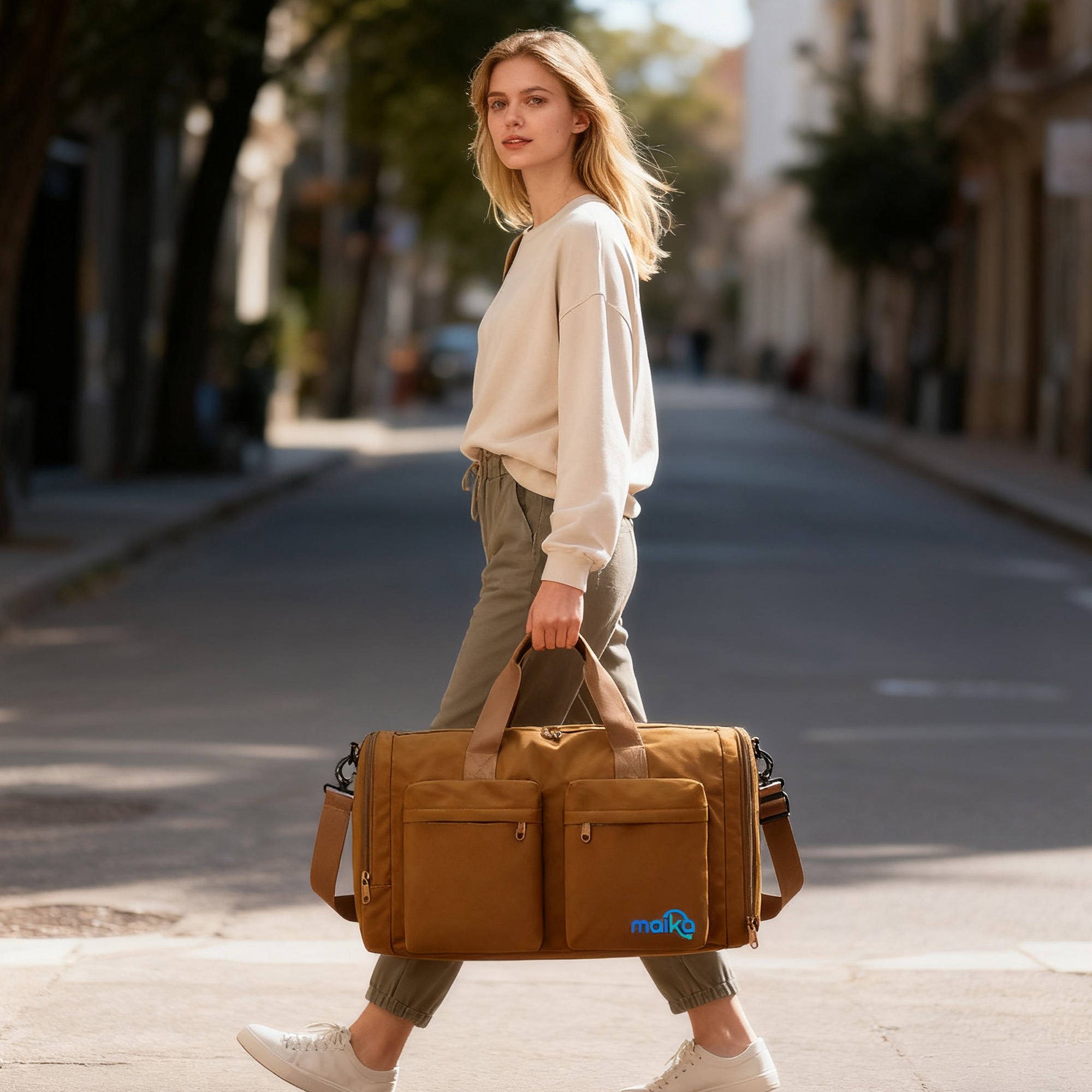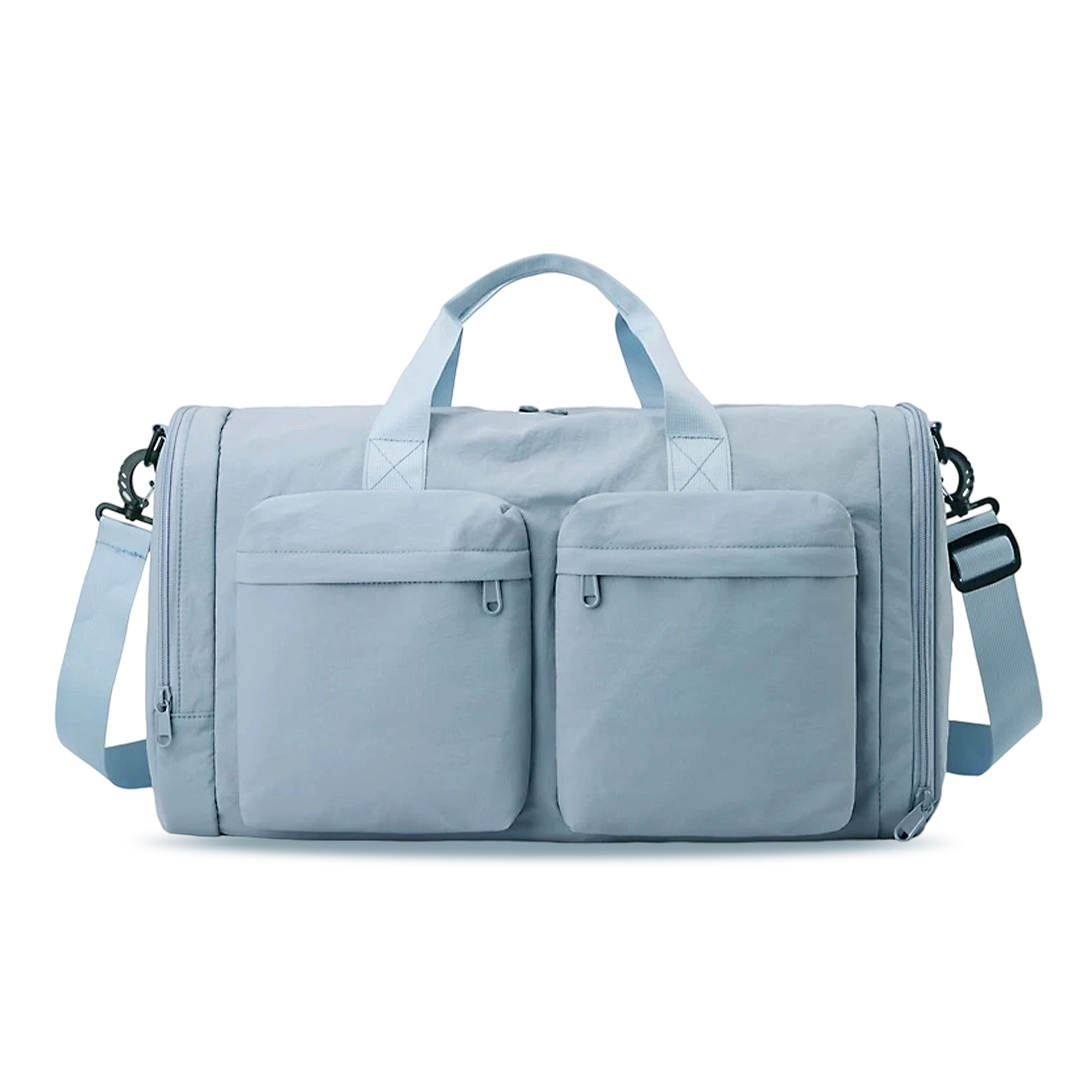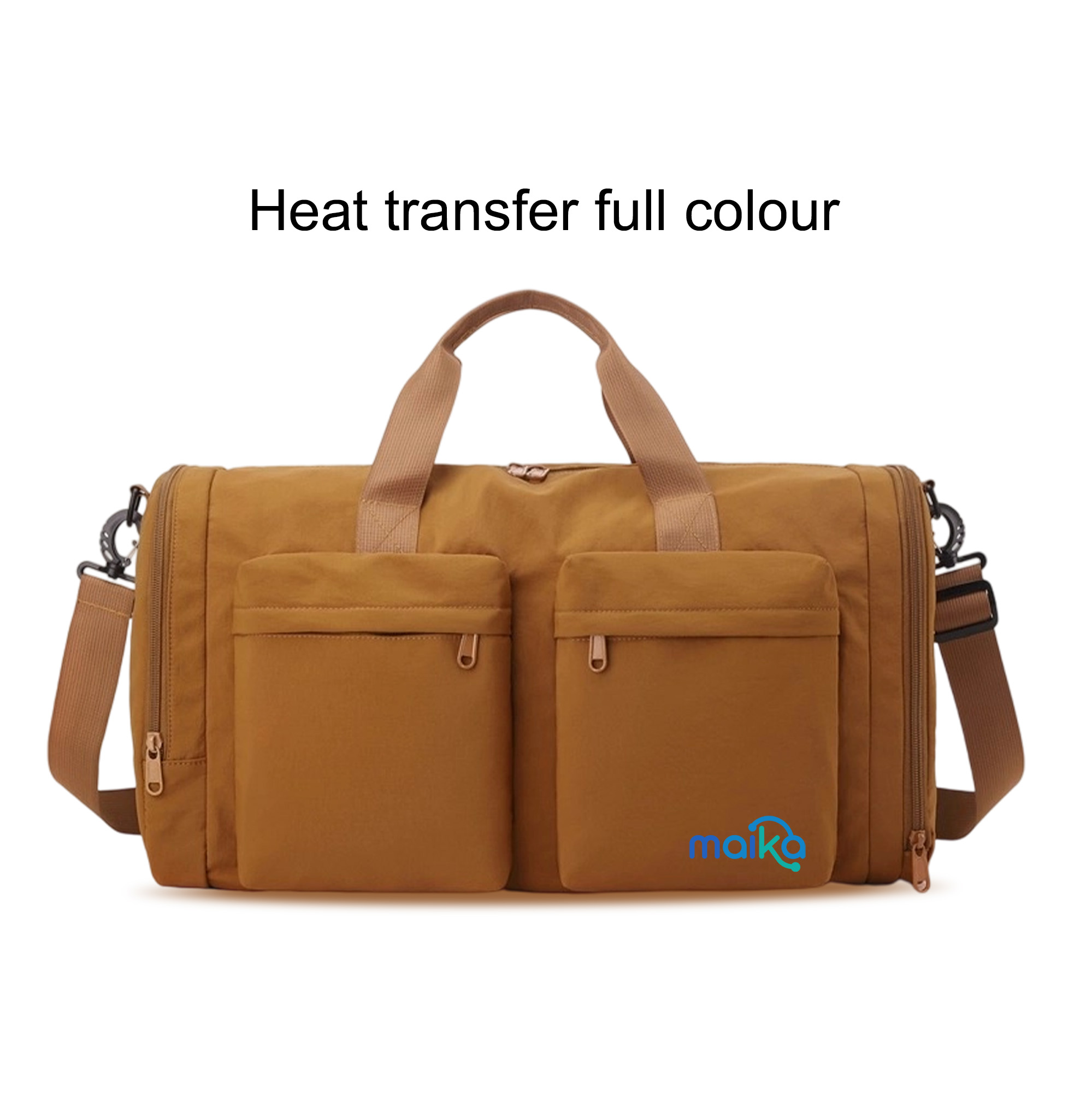 This Foldable Travel Duffle Bag can be conveniently folded up into a bag with a pocket when not in use. Featuring 4 zipper pockets for essentials, a side zipper pocket for shoes and a belt on the back for suitcase fastening. Our quality duffle bag is made of Nylon, that is water resistant and durable. With full colour heat transfer to showcase your design, you can choose from 6 colours. Sizing: 45cm w 27cm h 23cm d Folded: 23cm w 27cm h 5.3cm d Handle 34cm Adjustable strap: 58-112cm (Shoes pocket can fit up to 2 pairs of shoes in Size 42 with a length of 27 cm or less. Materials: Nylon. Print Position: Front/Inside the side pocket.2week