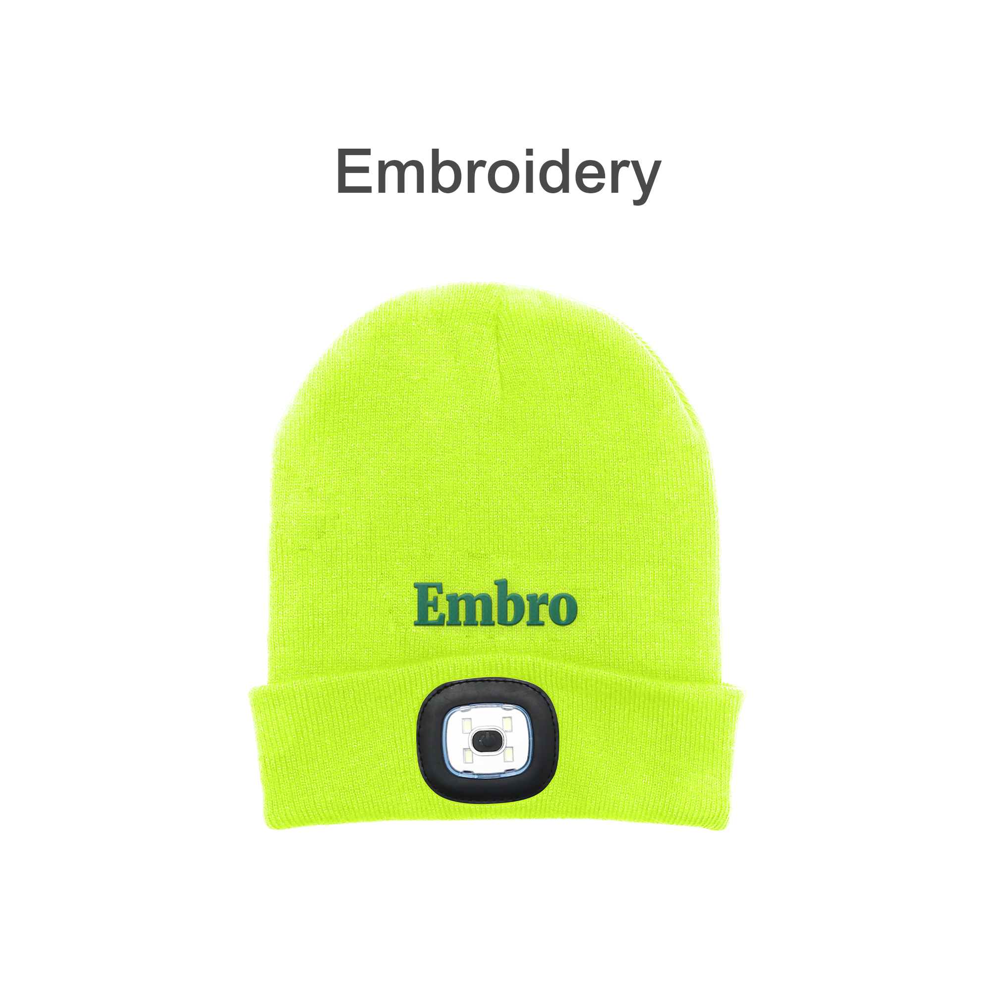 Elevate your style with our Headlamp Beanie! Crafted from elastic acrylic fibre, it boasts a soft touch and superior warmth for cold days. The hat features a roll-up cuff, with Embroidery and Woven Labels to showcase your design. It comes in 4 trendy colours. The headlamp lights up dark areas without using your hands, and it s detachable for charging. Sizing: 20 x 22cm. Materials: Acrylic + LED Lamp. Print Position: Front.5week