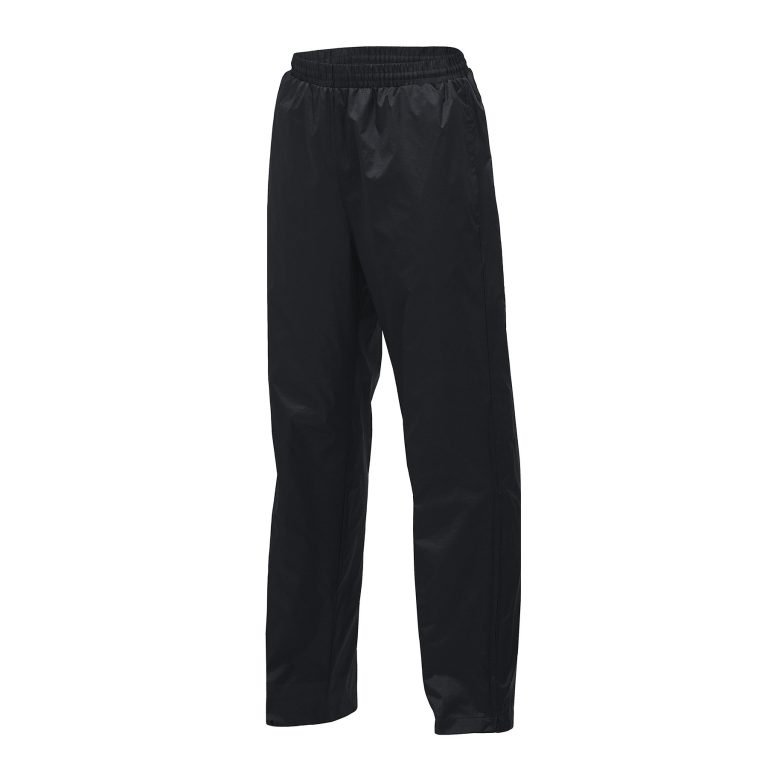 100% nylon ripstop, Showerproof, Classic fit, Straight leg, Zipper down leg with gusset enlarged hem opening, Fully elasticated waist with dyed to match draw cord inside, Upper 2/3 lined with single jersey, Bottom 1/3 lined with polyester taffeta, Onseam side pockets and zippered back pocket. Colours: black, navy. Sizes: 3XS-5XL