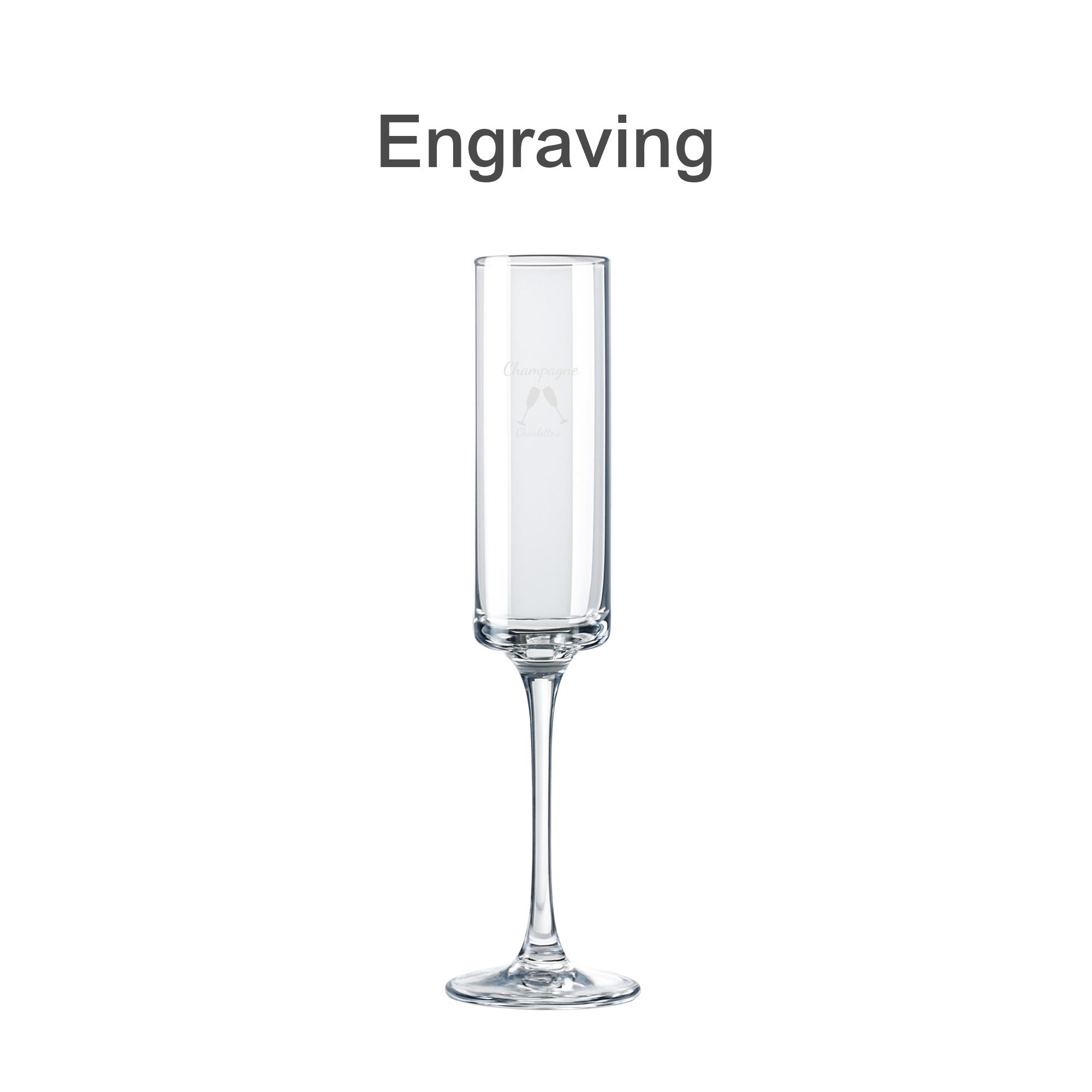 Get your branding seen with our new Straight Champagne Flute! Crafted from high-quality soda lime glass, this 180ml coupe features the timeless, elegant curves that have made the style a classic for showcasing cocktails and spirits. Its well-proportioned bowl, stem, and base ensure a refined balance and a comfortable hold. With engraving to highlight your branding. An ideal choice for weddings, events, bars, hotels, and clubs. Sizing: Top diameter: 4.5cmHeight: 24.5cm. Materials: Soda Lime Glass. Price Notes: Hand washing recommended. Print Position: Front.9week